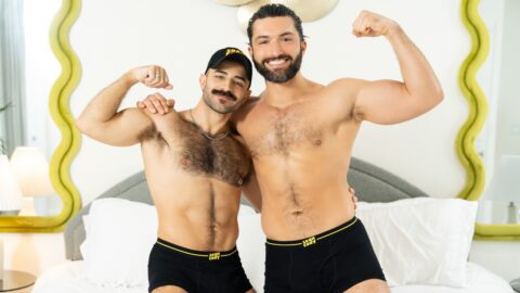 Description: Brogan needs to rest after his workout, so he strips down to just a towel and lies back on the bench in the locker room. When Lane comes in, he checks him out, slowly stripping out of his shorts, then approaches and lays the tall top bare. They start kissing, and Lane sucks the bearded hunk, then rides him. Brogan pounds Lane from behind against the lockers, then tosses him onto the bench to drill that hole as he's face down, ass up! The bottom orgasms as he gets drilled on his back, and Brogan pulls out and cums all over him.